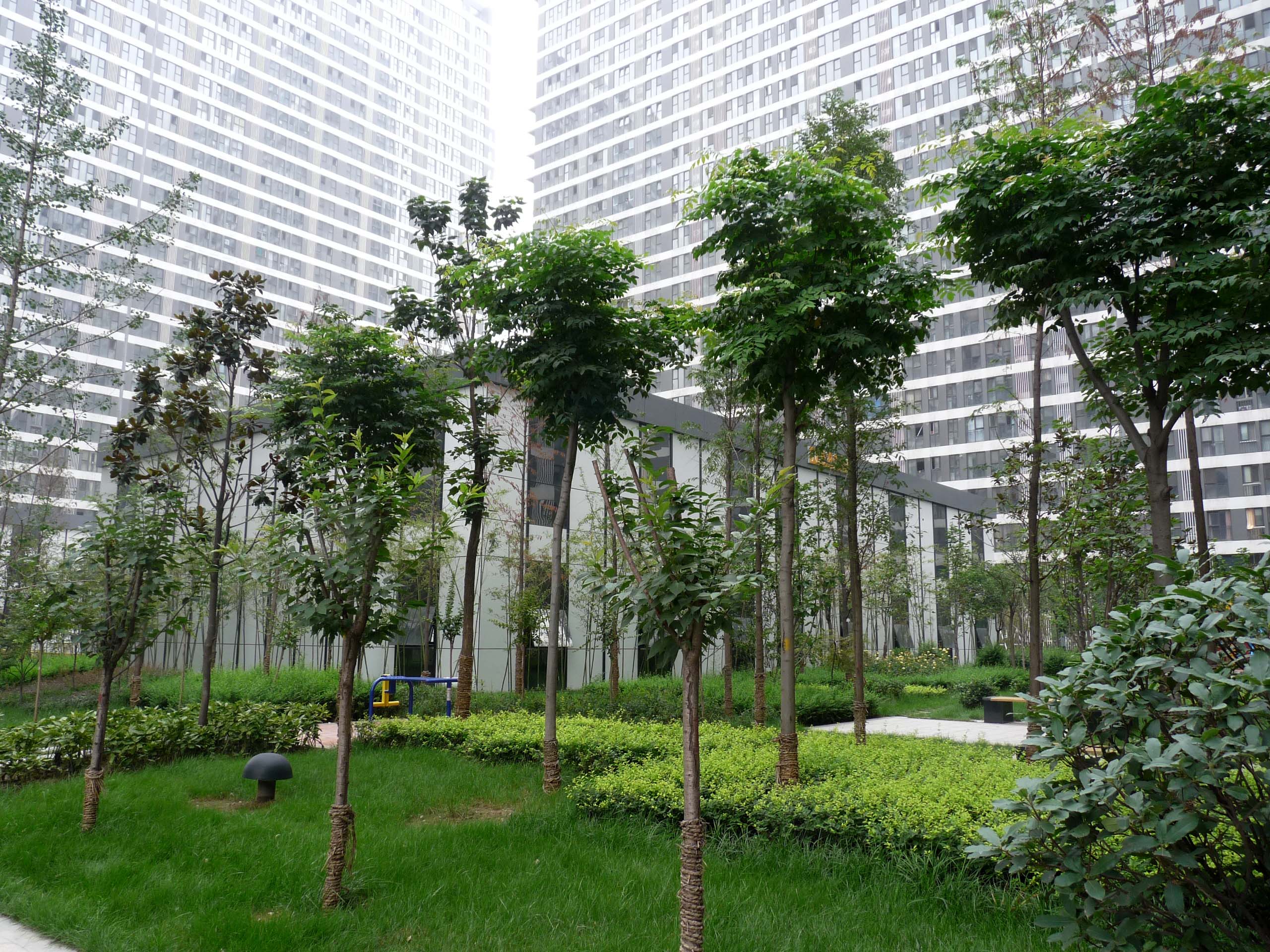 整齊劃一的辦公桌椅 綠意盎然的社區(qū)環(huán)境